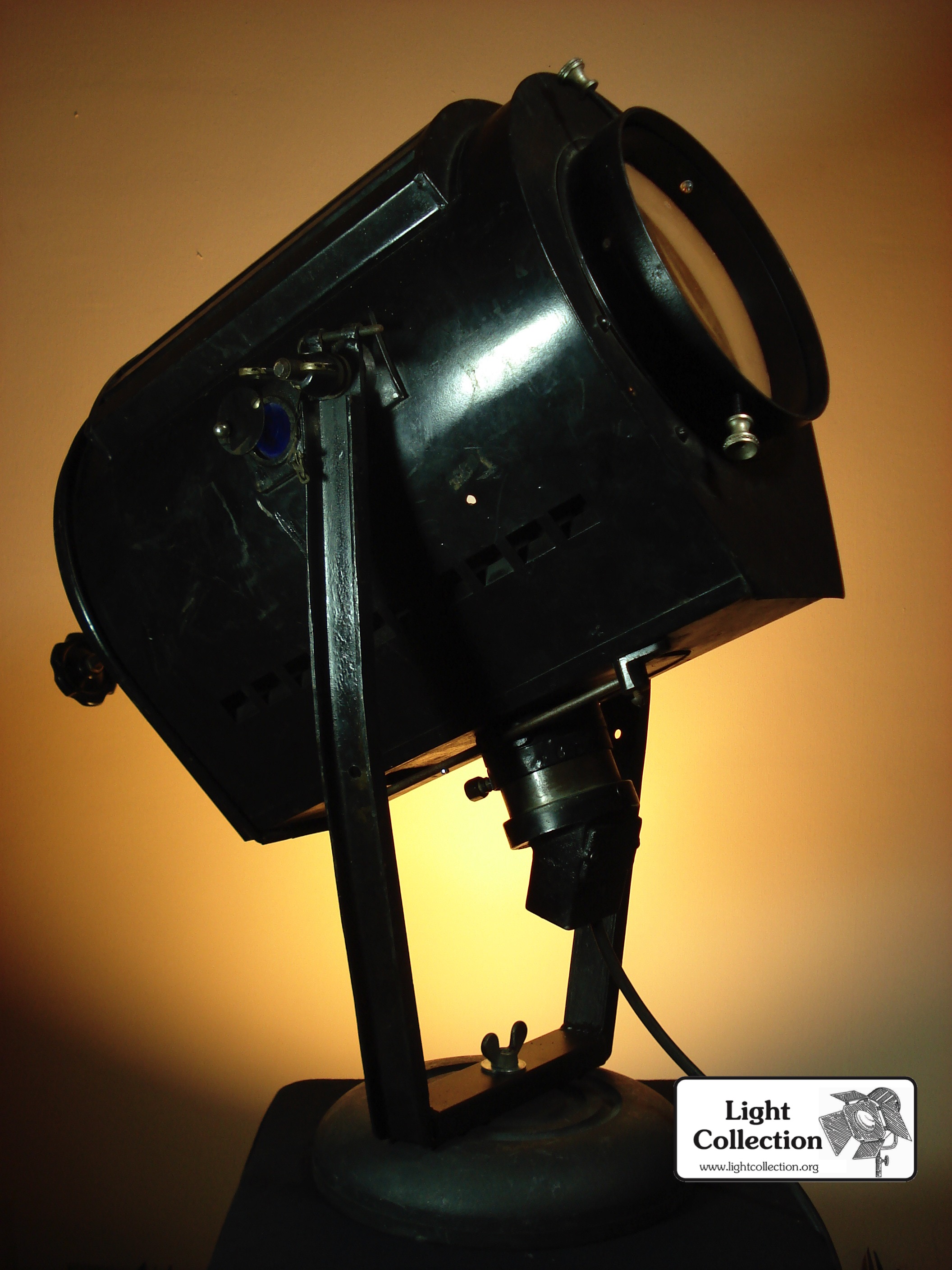 There is a few interesting elements on this lamp: there is a small blue window on the side. I guess it was used to monitor the lamp bulb during operation, and also to check the reflector adjustment.
