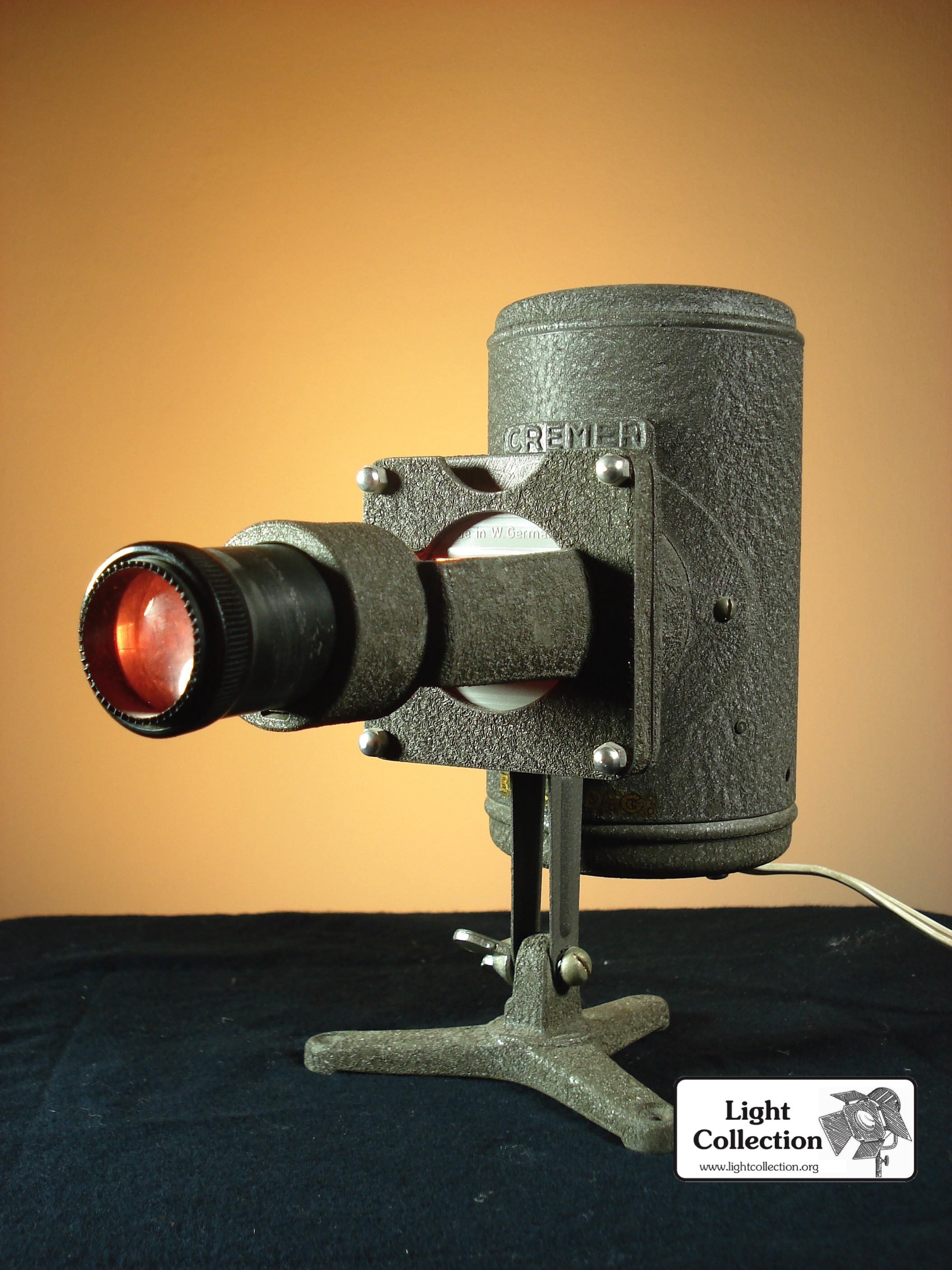 Il ne s'agit pas vraiment d'un projecteur théâtre ou cinéma, mais vu qu'il est fabriqué par Cremer, il me semblait intéressant.