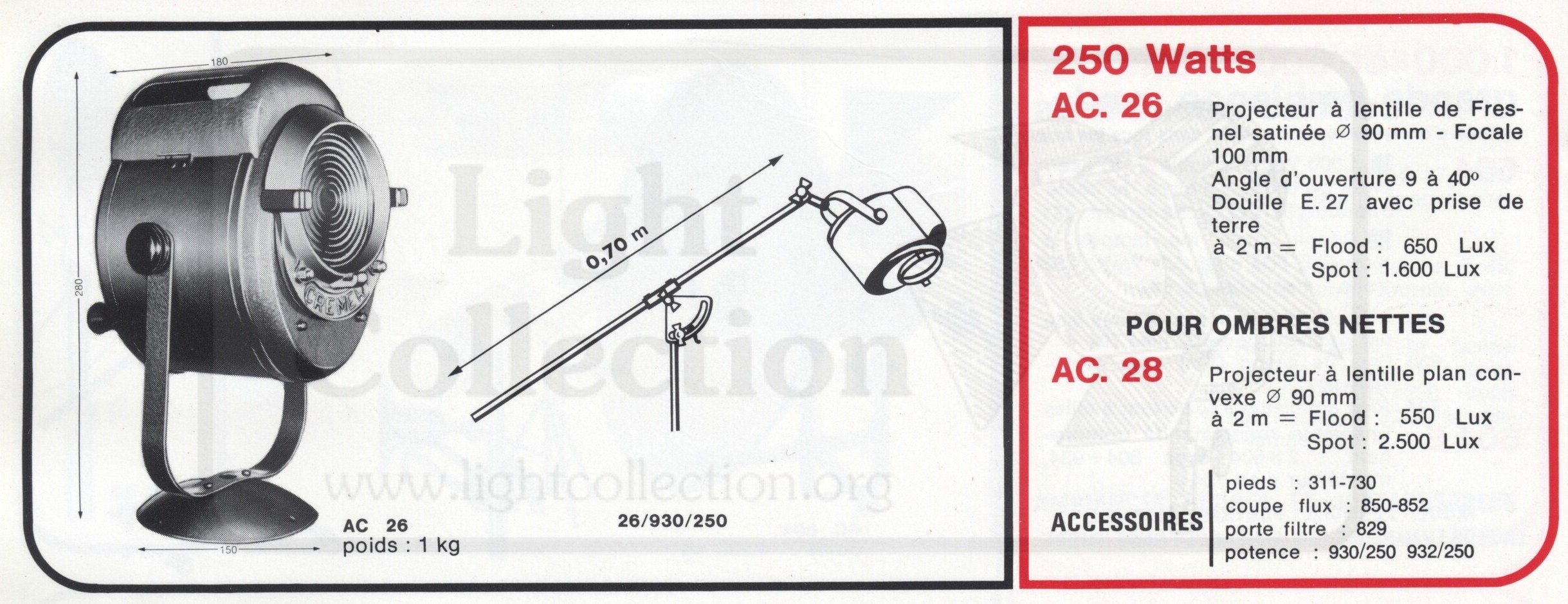 La lentille mesure 90mm de diamètre. Il ne s'agit pas de la lentille d'origine, normalement ce modèle de projecteur est équipé de lentille fresnel principalement, même si une version PC était disponible (AC.28).
