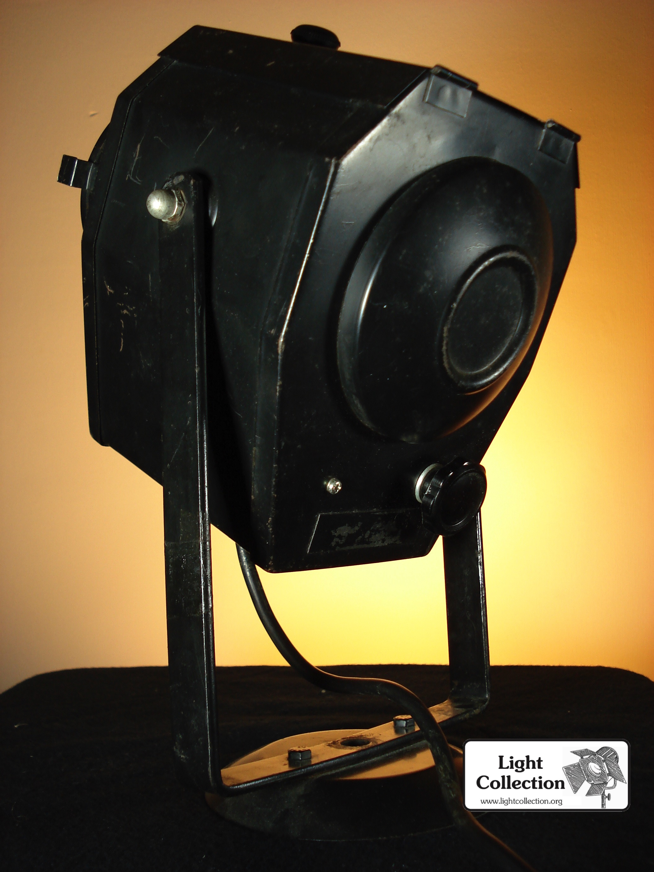 Il s'agit d'un petit fresnel (95mm de diamètre pour la lentille), équipé d'une douille E27, prévu pour une lampe à réflecteur intégré (épiscope).