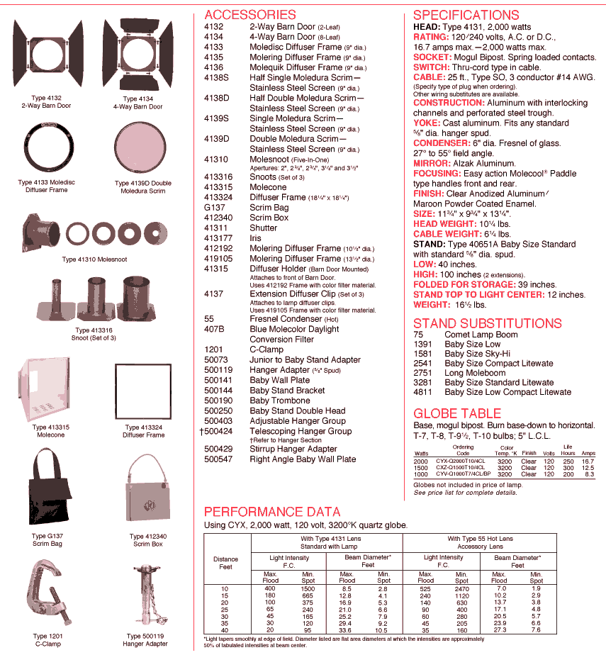 Ce Mole-Richardson Baby Junior Solarspot 2kW n'est pas vraiment un ancêtre, en effet, il est toujours au catalogue de Mole-Richardson.