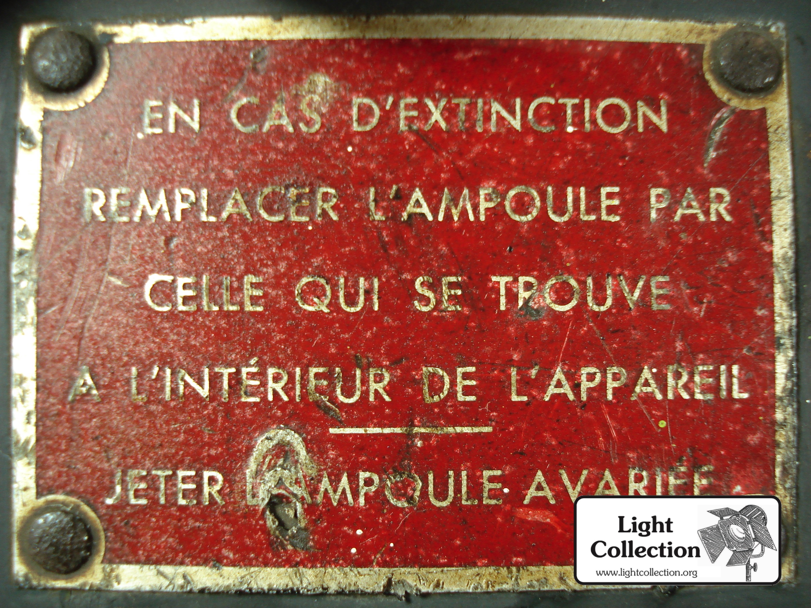 An other finding on the web: it seems that this lamp use to be powered by a battery (4V?). The lamp bulb was mounted directly on the back of the lens, on the front door. I think it was an episcope lamp (BA15d?).