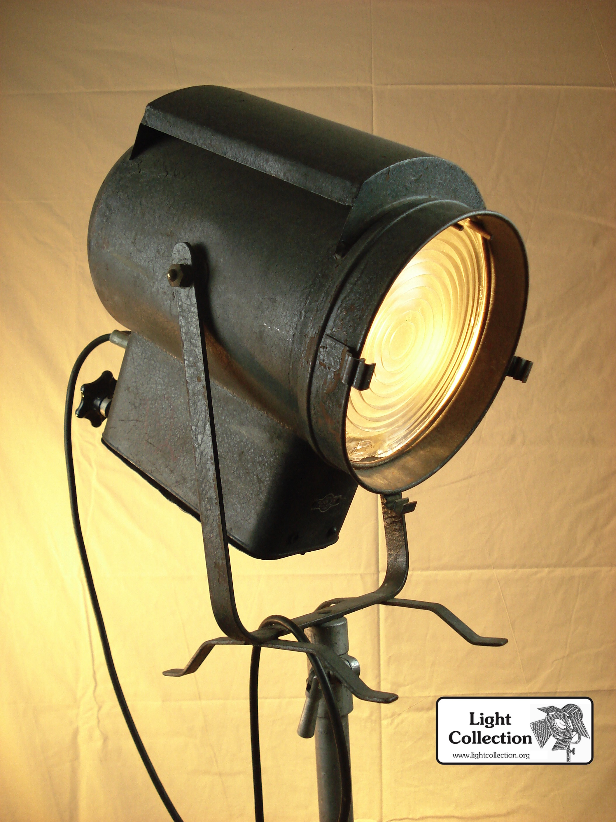Seing the integrated base plate, it seems this light as used for film and picture lighting. The yoke is also equipped with a spigot to mount the light on a stand, but it's a non-standard spigot.
